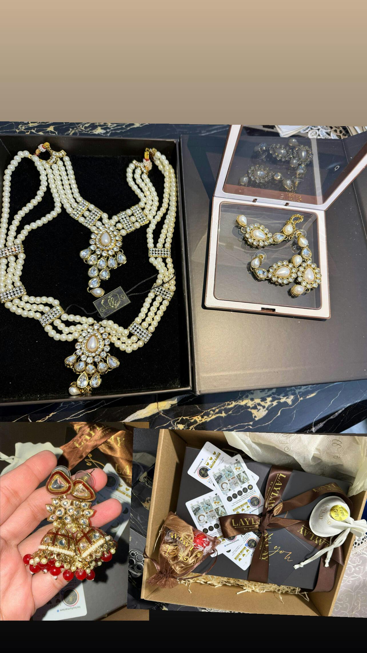 A full pearl mala with choker,tikka and earrings